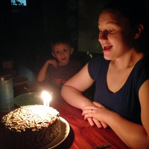 Matt thought it was unfair to post something for his birthday and not for mine. So, I can at least show my cake. And I always like seeing pictures of people in the light of their birthday candles, so I'll share that, too. It was a good day. Matt got me the first 4 seasons of Castle, Rise of the Guardians, and Beatles 1 all on Amazon. We're in to digital gifts these days. Also, Scott wrapped two or three boxes up in paper and LOTS of tape, which was pretty cute. I feel very blessed. Happy Birthday to me!